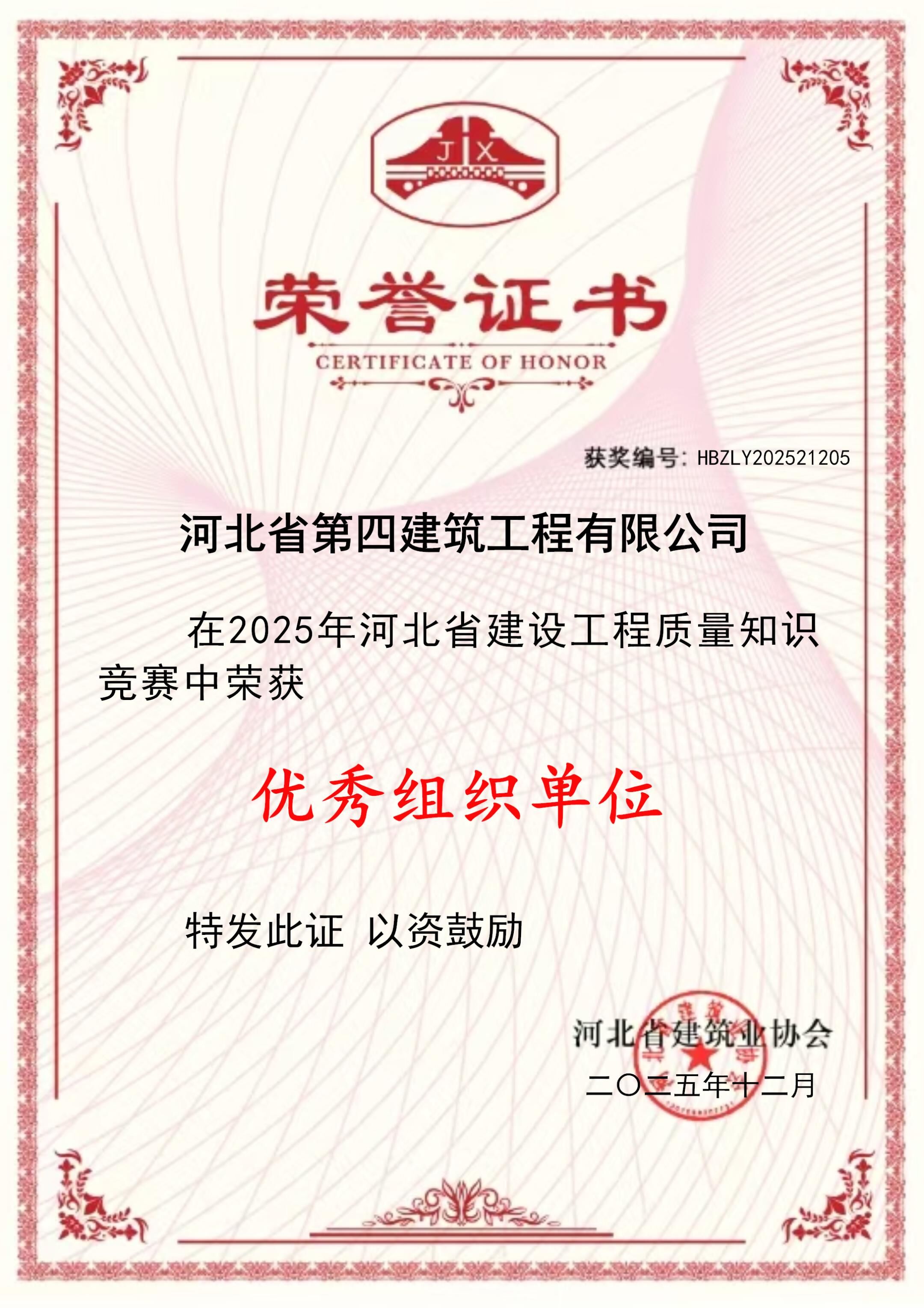 河北四建:2025年河北省建筑业质量管理小组活动最佳组织单位