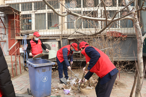 上午9点,志愿者们身穿志愿服务红色马甲,手拿劳动工具一路兴致高昂地来到省四建小区。经过与物业沟通劳动内容后,大家迅速行动起来,有的拿笤帚清扫小区主干道上的烟头、纸屑,有的拖着河北四建收集清扫的垃圾,大家不怕脏、不怕累,争先恐后,一片热火朝天的景象,不一会儿一条干净整洁的道路就呈现在小区居民面前。