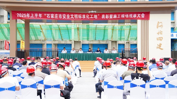 6月26日,2025年上半年“石家庄市安全文明标准化工地”表彰暨施工现场观摩大会在二分公司西三教城中村改造回迁项目举行。石家庄市住房和城乡建设局副局长苏西彦、河北省建筑业协会副会长李同泽、石家庄市建筑协会执行会长王洪祥、石家庄市建筑协会安全专业委员会秘书长刘振波、河北建工集团安全管理部部长柴竑、公司副总经理刘金河,石家庄市住建集团建筑工程有限公司安全主管、石家庄市建筑协会安全专业委员会副秘书长王静等领导,以及来自全市建筑行业近200名同仁参与会议并观摩。